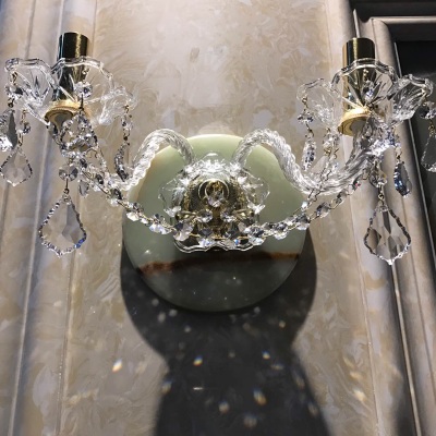 温润玉石底座搭配双头枫叶型水晶壁灯,玉石的浅绿与水晶的通透形成鲜明对比,却不会让人觉得突兀,一种全新的搭配方式。