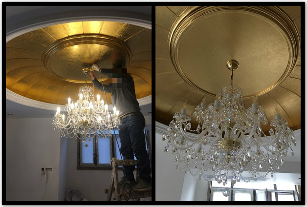 如果以为只有小图你就错了,金色的吊灯搭配双层奢华欧式水晶剑,俨然就是欧洲宫殿既视感。
