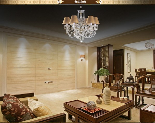 华丽缤纷的装饰代表了居室主人对精致生活的追求,优雅隽永的气度彰显了主人卓越的生活品位。欧式水晶吊灯以其浓烈的色彩、精美的造型达到雍容华贵、富丽堂皇的欧洲宫庭效果,体现出尊贵的家居生活品质。