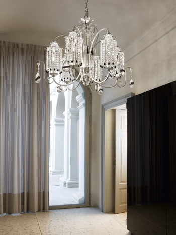 悬挂水晶垂饰的位置也不再是灯碟下方