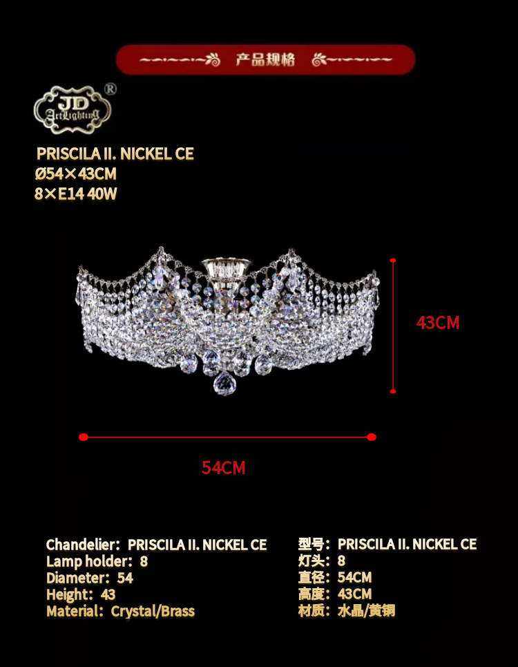 * 表示必填采购:捷克工厂原装进口波浪形欧式餐厅卧室书房金色银色全铜水晶吸顶灯