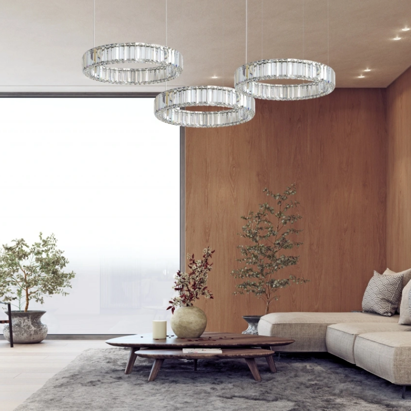 - 捷克工厂原装进口后现代轻奢风圆环形客厅餐厅鱼线款水晶棱镜吊灯