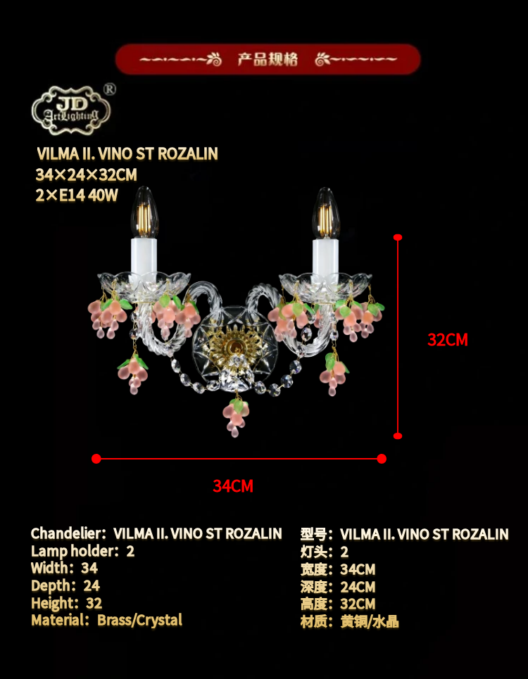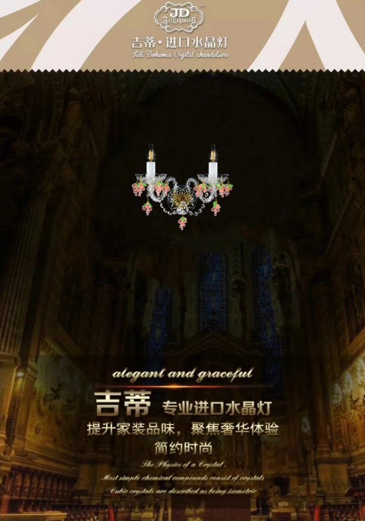 * 表示必填采购:捷克工厂原装进口欧式田园客厅餐厅卧室书房床头粉色葡萄水晶壁灯